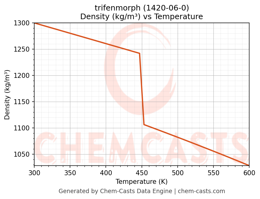 This page presents the temperature-dependent thermodynamic and transport properties of trifenmorph (CAS 1420-06-0) calculated at a constant pressure of 1 atm (101325 Pa) over the temperature range 250-500 K.