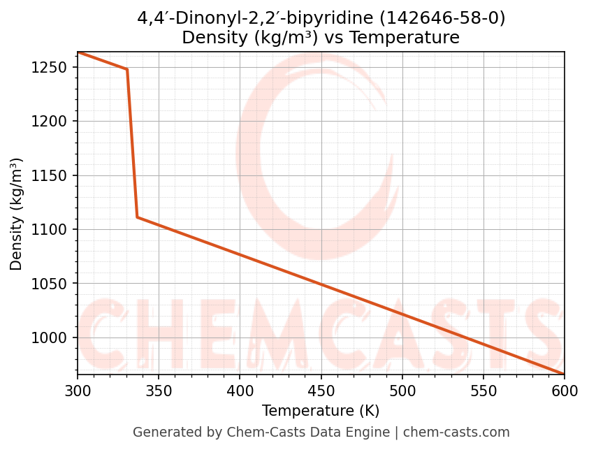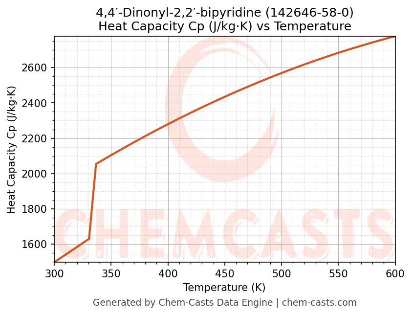 - Specific heat capacity (Cp) indicates the amount of energy required to raise the temperature of 4,4′-Dinonyl-2,2′-bipyridine and is critical for energy balance and heat-exchanger design.