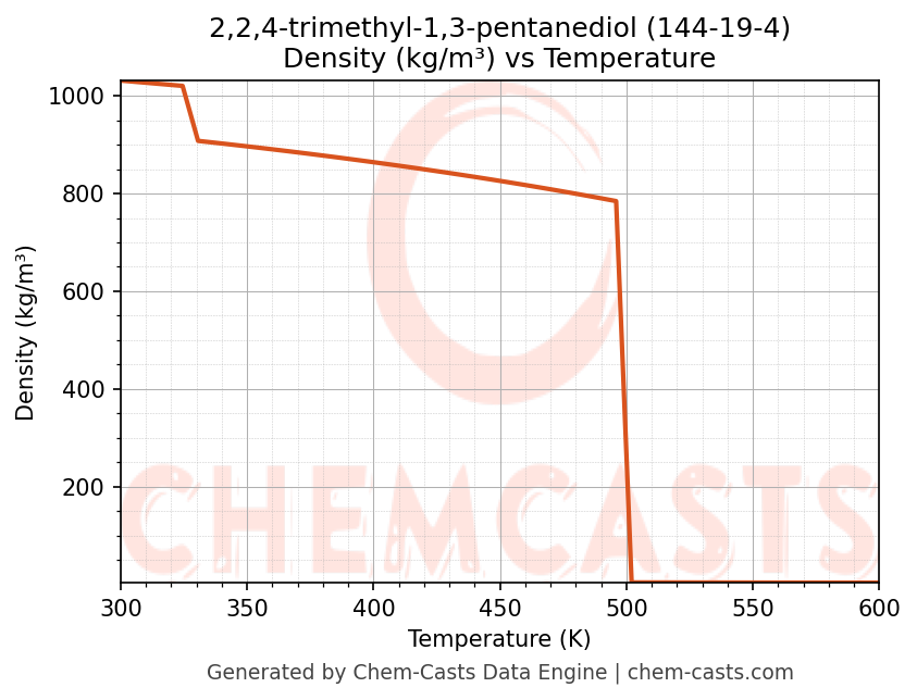 This page presents the temperature-dependent thermodynamic and transport properties of 2,2,4-trimethyl-1,3-pentanediol (CAS 144-19-4) calculated at a constant pressure of 1 atm (101325 Pa) over the temperature range 250-500 K.