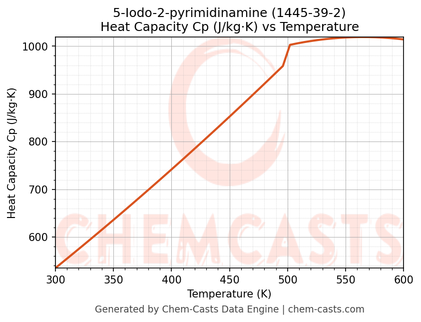 - Specific heat capacity (Cp) indicates the amount of energy required to raise the temperature of 5-Iodo-2-pyrimidinamine and is critical for energy balance and heat-exchanger design.