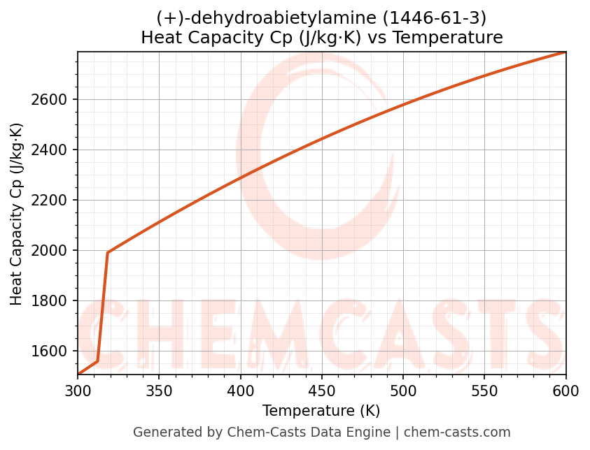 - Specific heat capacity (Cp) indicates the amount of energy required to raise the temperature of (+)-dehydroabietylamine and is critical for energy balance and heat-exchanger design.