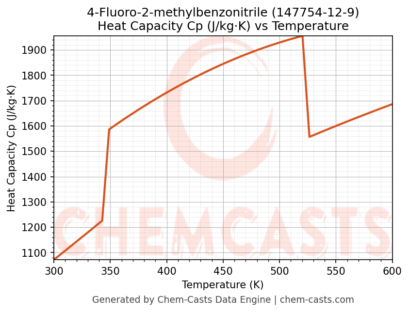 - Specific heat capacity (Cp) indicates the amount of energy required to raise the temperature of 4-Fluoro-2-methylbenzonitrile and is critical for energy balance and heat-exchanger design.