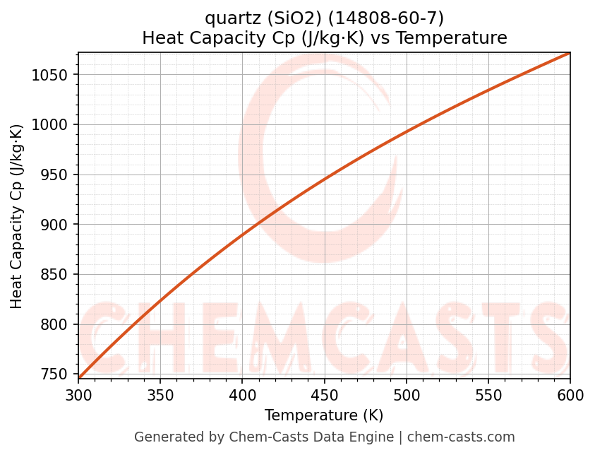 - Specific heat capacity (Cp) indicates the amount of energy required to raise the temperature of quartz (SiO2) and is critical for energy balance and heat-exchanger design.