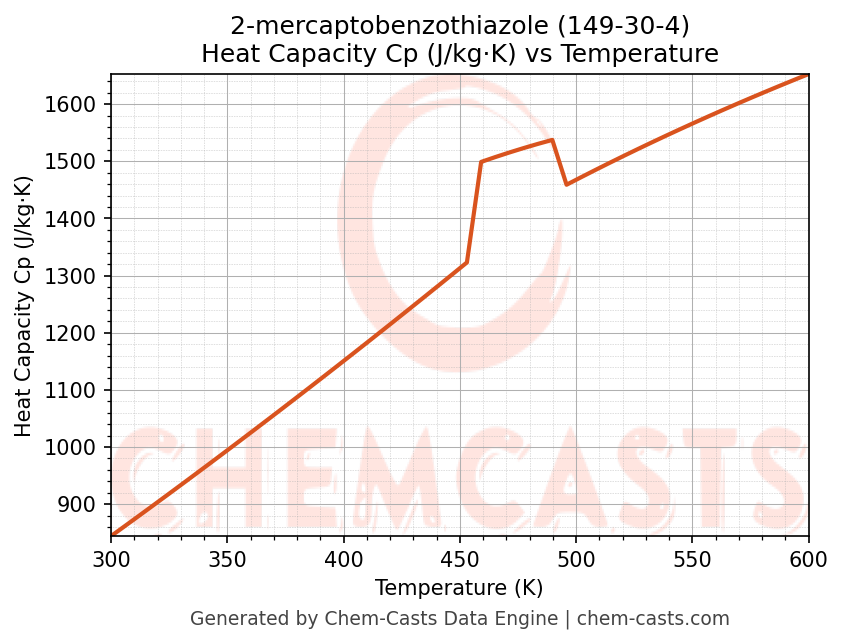 2-mercaptobenzothiazole Thermodynamic Properties vs Temperature (CAS 149-30-4)