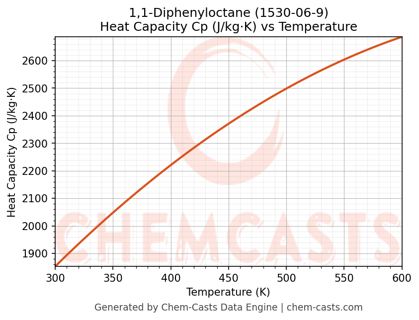 - Specific heat capacity (Cp) indicates the amount of energy required to raise the temperature of 1,1-Diphenyloctane and is critical for energy balance and heat-exchanger design.