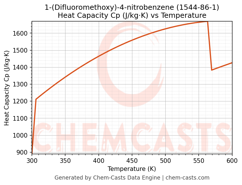 - Specific heat capacity (Cp) indicates the amount of energy required to raise the temperature of 1-(Difluoromethoxy)-4-nitrobenzene and is critical for energy balance and heat-exchanger design.