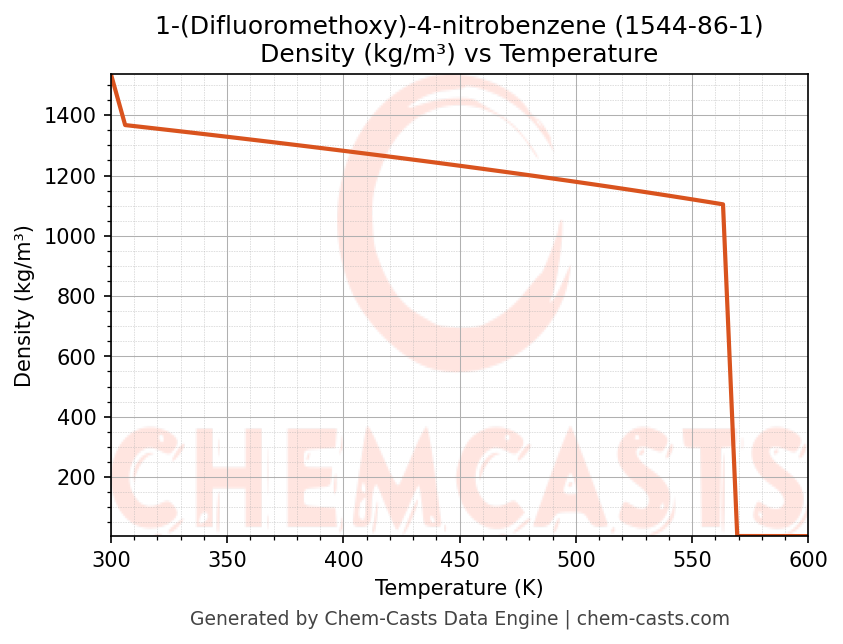 This page presents the temperature-dependent thermodynamic and transport properties of 1-(Difluoromethoxy)-4-nitrobenzene (CAS 1544-86-1) calculated at a constant pressure of 1 atm (101325 Pa) over the temperature range 250-500 K.
