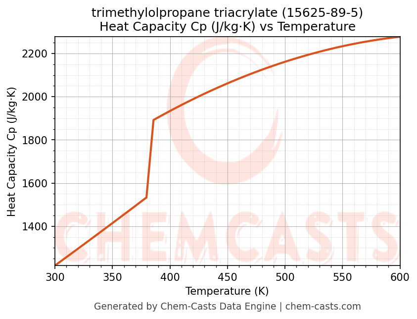 - Specific heat capacity (Cp) indicates the amount of energy required to raise the temperature of trimethylolpropane triacrylate and is critical for energy balance and heat-exchanger design.