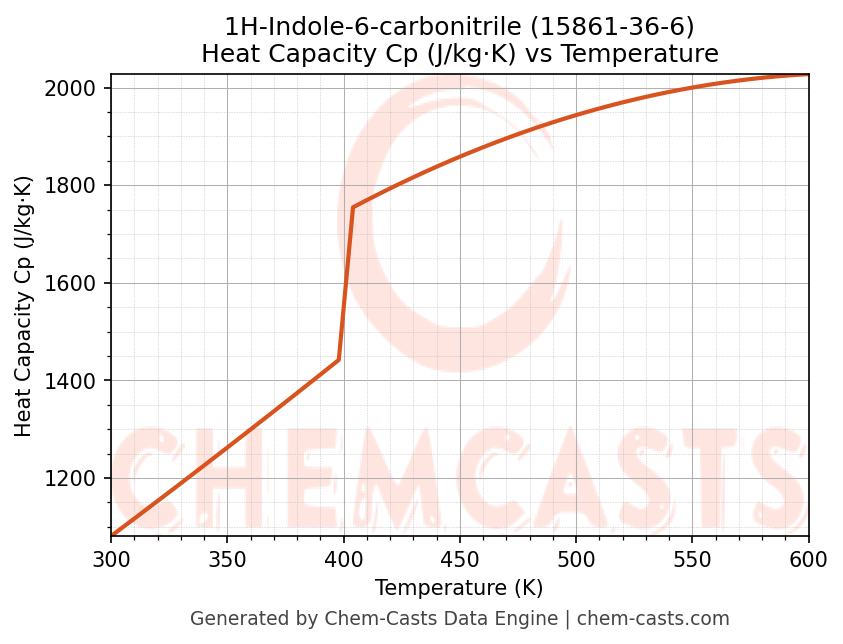- Specific heat capacity (Cp) indicates the amount of energy required to raise the temperature of 1H-Indole-6-carbonitrile and is critical for energy balance and heat-exchanger design.