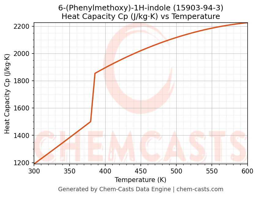 - Specific heat capacity (Cp) indicates the amount of energy required to raise the temperature of 6-(Phenylmethoxy)-1H-indole and is critical for energy balance and heat-exchanger design.