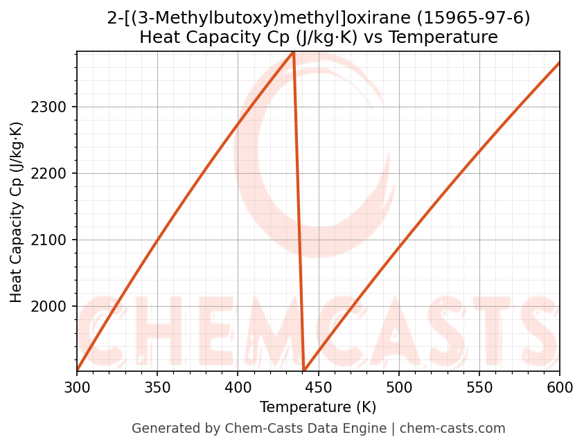 ![Heat Capacity (Cp) vs Temperature chart for 2-[(3-Methylbutoxy)methyl]oxirane (CAS 15965-97-6)](https://chemcasts-prod.s3.ap-south-1.amazonaws.com/chem_plots_pconst/15965-97-6-cp.png)