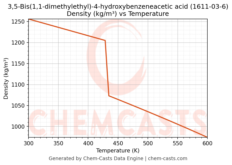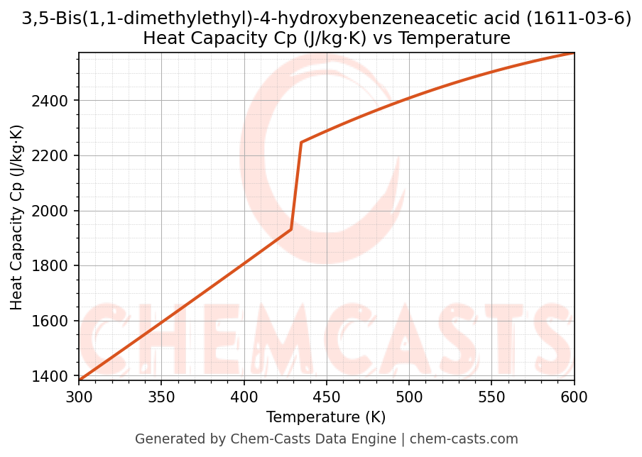 - Specific heat capacity (Cp) indicates the amount of energy required to raise the temperature of 3,5-Bis(1,1-dimethylethyl)-4-hydroxybenzeneacetic acid and is critical for energy balance and heat-exchanger design.