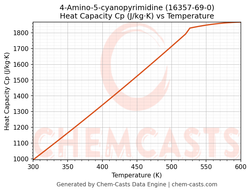 - Specific heat capacity (Cp) indicates the amount of energy required to raise the temperature of 4-Amino-5-cyanopyrimidine and is critical for energy balance and heat-exchanger design.