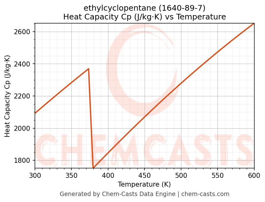 - Specific heat capacity (Cp) indicates the amount of energy required to raise the temperature of ethylcyclopentane and is critical for energy balance and heat-exchanger design.