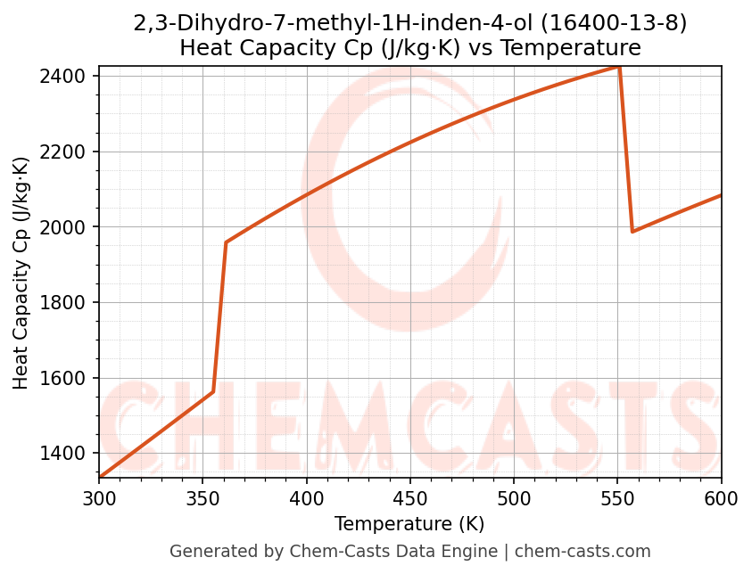 - Specific heat capacity (Cp) indicates the amount of energy required to raise the temperature of 2,3-Dihydro-7-methyl-1H-inden-4-ol and is critical for energy balance and heat-exchanger design.