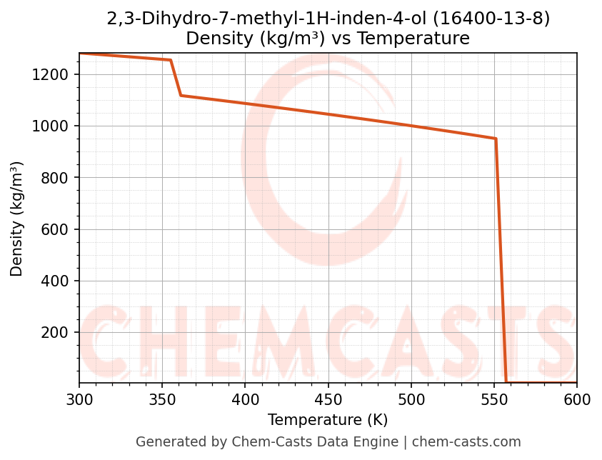 This page presents the temperature-dependent thermodynamic and transport properties of 2,3-Dihydro-7-methyl-1H-inden-4-ol (CAS 16400-13-8) calculated at a constant pressure of 1 atm (101325 Pa) over the temperature range 250-500 K.