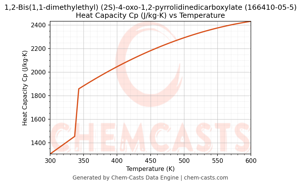 - Specific heat capacity (Cp) indicates the amount of energy required to raise the temperature of 1,2-Bis(1,1-dimethylethyl) (2S)-4-oxo-1,2-pyrrolidinedicarboxylate and is critical for energy balance and heat-exchanger design.
