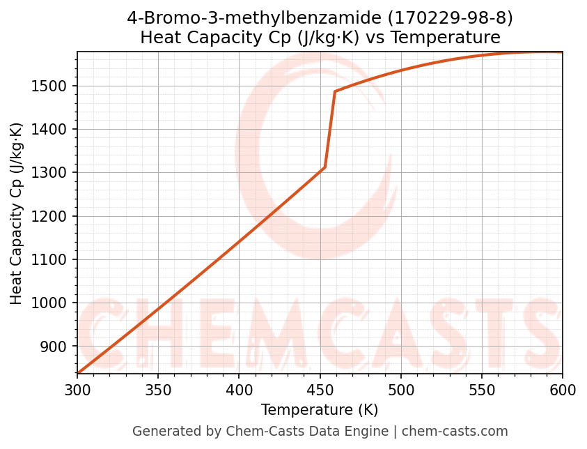 - Specific heat capacity (Cp) indicates the amount of energy required to raise the temperature of 4-Bromo-3-methylbenzamide and is critical for energy balance and heat-exchanger design.