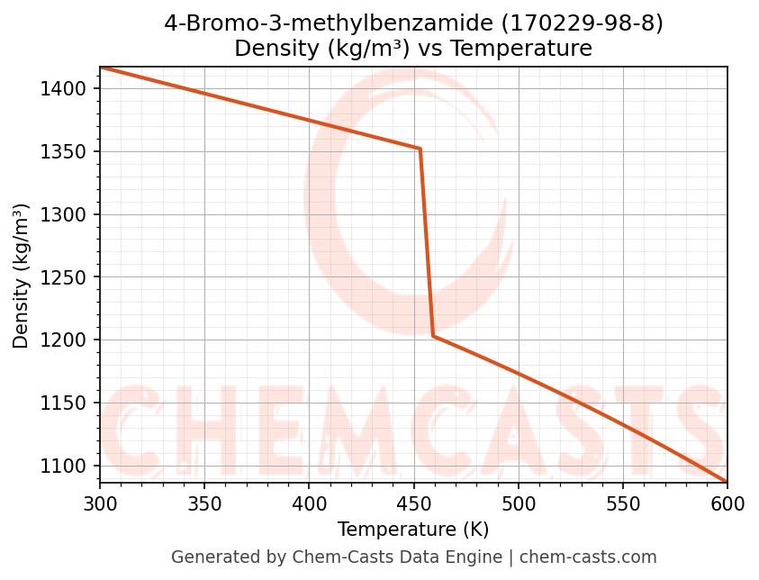 This page presents the temperature-dependent thermodynamic and transport properties of 4-Bromo-3-methylbenzamide (CAS 170229-98-8) calculated at a constant pressure of 1 atm (101325 Pa) over the temperature range 250-500 K.