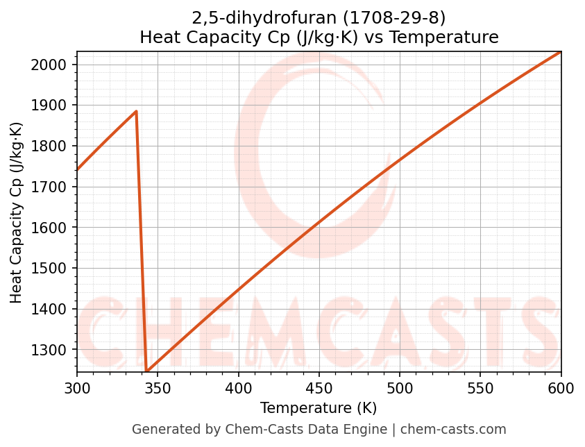 - Specific heat capacity (Cp) indicates the amount of energy required to raise the temperature of 2,5-dihydrofuran and is critical for energy balance and heat-exchanger design.