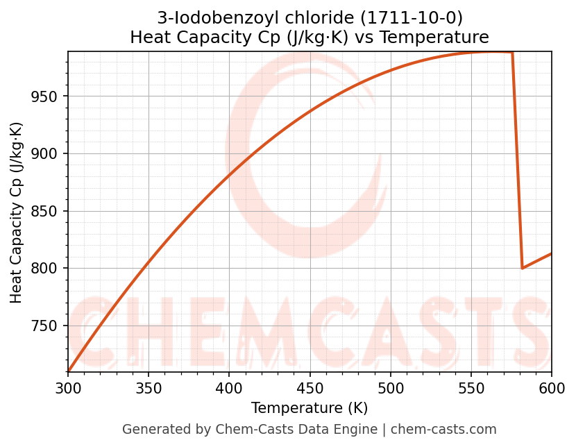 - Specific heat capacity (Cp) indicates the amount of energy required to raise the temperature of 3-Iodobenzoyl chloride and is critical for energy balance and heat-exchanger design.
