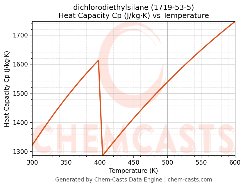 - Specific heat capacity (Cp) indicates the amount of energy required to raise the temperature of dichlorodiethylsilane and is critical for energy balance and heat-exchanger design.