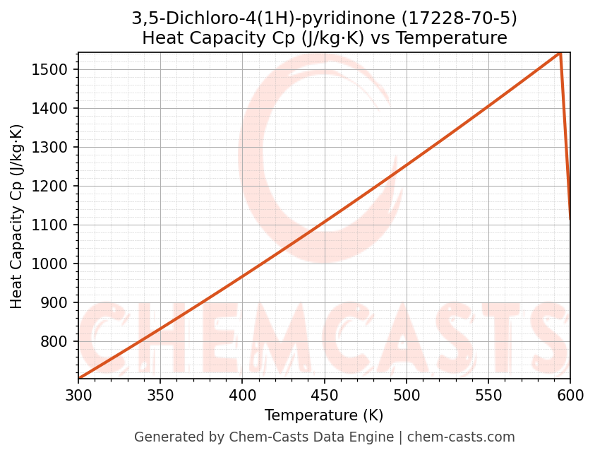 - Specific heat capacity (Cp) indicates the amount of energy required to raise the temperature of 3,5-Dichloro-4(1H)-pyridinone and is critical for energy balance and heat-exchanger design.