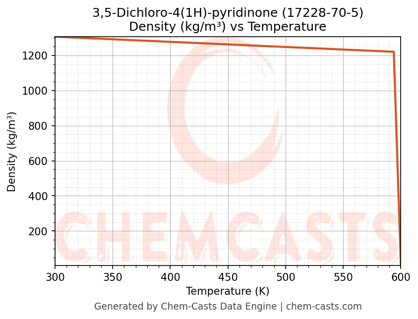 This page presents the temperature-dependent thermodynamic and transport properties of 3,5-Dichloro-4(1H)-pyridinone (CAS 17228-70-5) calculated at a constant pressure of 1 atm (101325 Pa) over the temperature range 250-500 K.