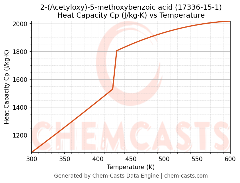 - Specific heat capacity (Cp) indicates the amount of energy required to raise the temperature of 2-(Acetyloxy)-5-methoxybenzoic acid and is critical for energy balance and heat-exchanger design.