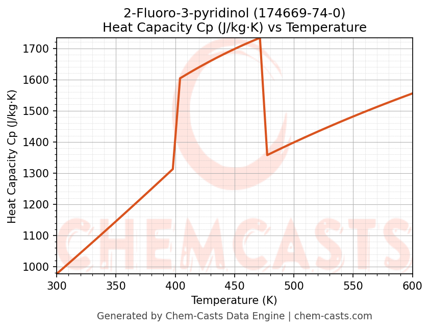 - Specific heat capacity (Cp) indicates the amount of energy required to raise the temperature of 2-Fluoro-3-pyridinol and is critical for energy balance and heat-exchanger design.