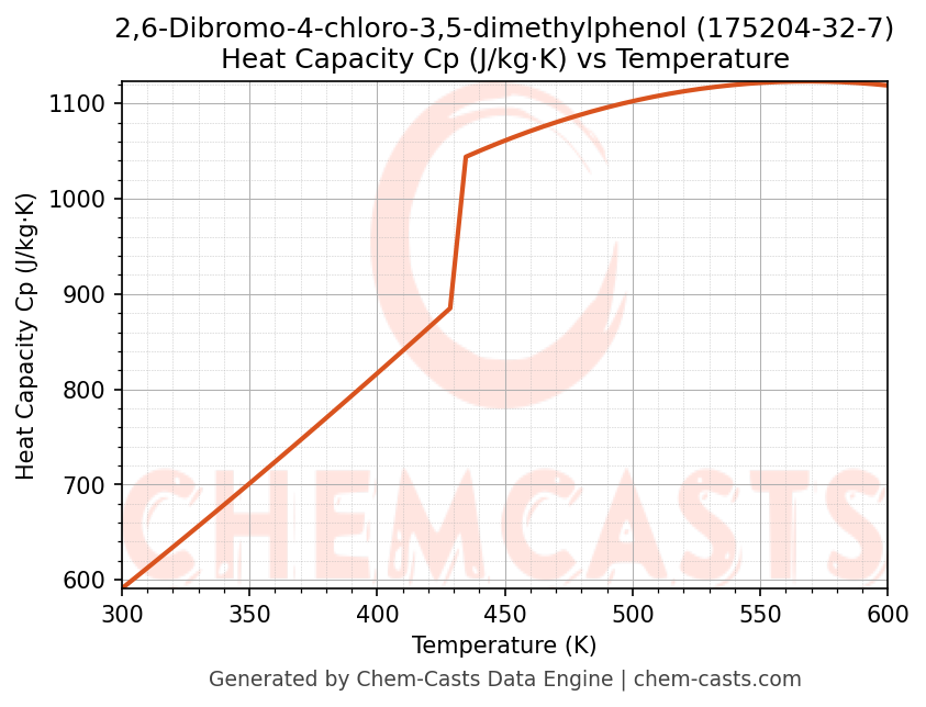 - Specific heat capacity (Cp) indicates the amount of energy required to raise the temperature of 2,6-Dibromo-4-chloro-3,5-dimethylphenol and is critical for energy balance and heat-exchanger design.