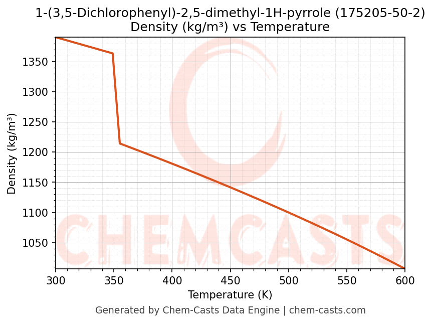This page presents the temperature-dependent thermodynamic and transport properties of 1-(3,5-Dichlorophenyl)-2,5-dimethyl-1H-pyrrole (CAS 175205-50-2) calculated at a constant pressure of 1 atm (101325 Pa) over the temperature range 250-500 K.