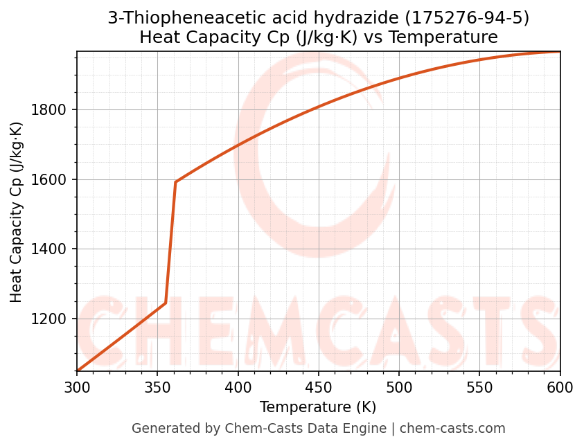 - Specific heat capacity (Cp) indicates the amount of energy required to raise the temperature of 3-Thiopheneacetic acid hydrazide and is critical for energy balance and heat-exchanger design.
