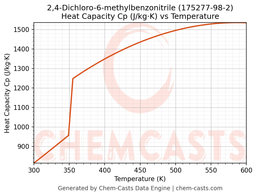 - Specific heat capacity (Cp) indicates the amount of energy required to raise the temperature of 2,4-Dichloro-6-methylbenzonitrile and is critical for energy balance and heat-exchanger design.