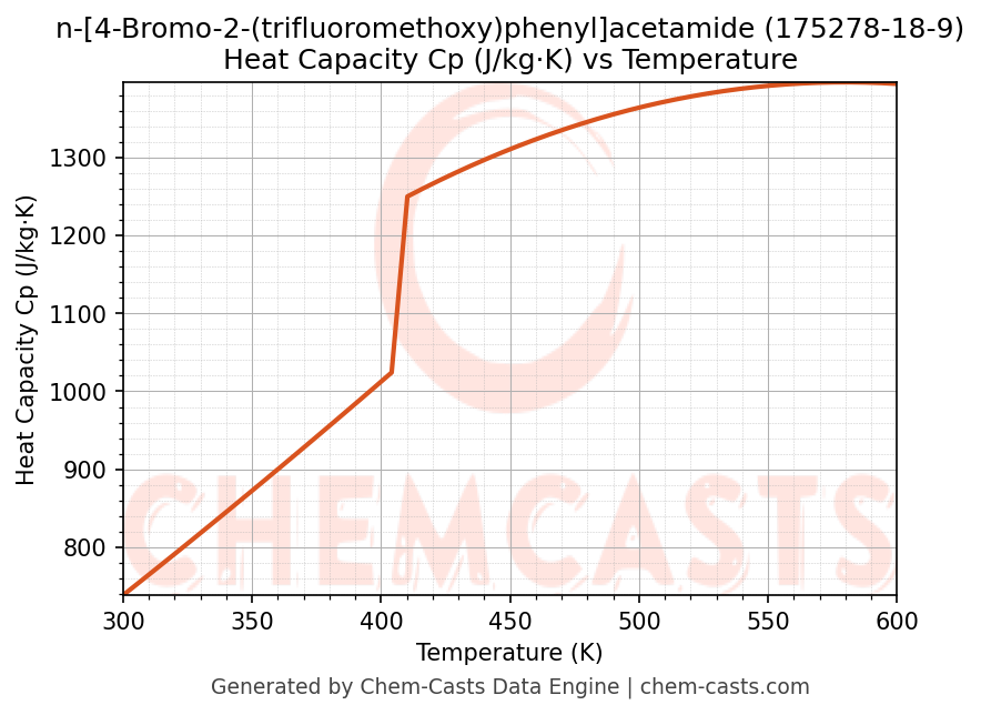 ![Heat Capacity (Cp) vs Temperature chart for n-[4-Bromo-2-(trifluoromethoxy)phenyl]acetamide (CAS 175278-18-9)](https://chemcasts-prod.s3.ap-south-1.amazonaws.com/chem_plots_pconst/175278-18-9-cp.png)