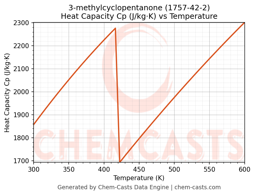 - Specific heat capacity (Cp) indicates the amount of energy required to raise the temperature of 3-methylcyclopentanone and is critical for energy balance and heat-exchanger design.