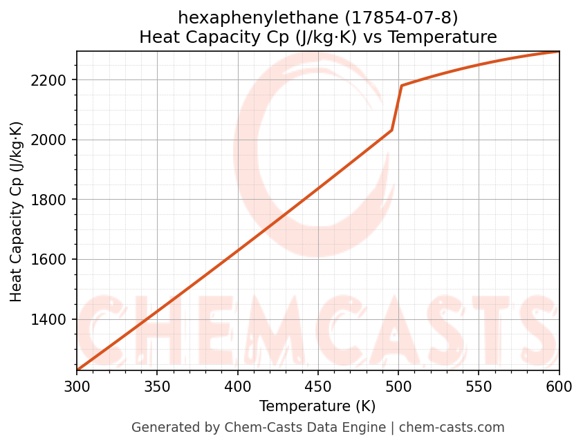 - Specific heat capacity (Cp) indicates the amount of energy required to raise the temperature of hexaphenylethane and is critical for energy balance and heat-exchanger design.