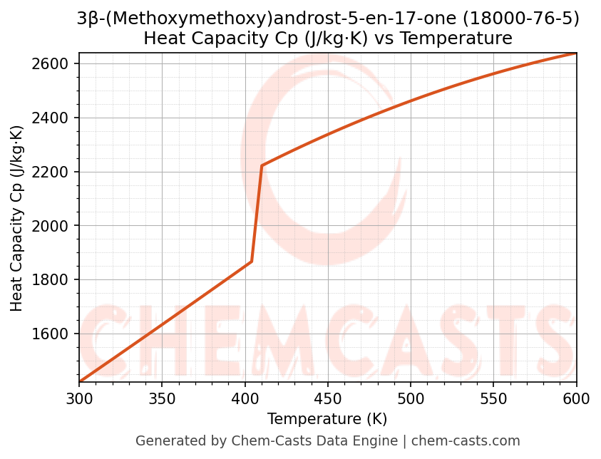 - Specific heat capacity (Cp) indicates the amount of energy required to raise the temperature of 3β-(Methoxymethoxy)androst-5-en-17-one and is critical for energy balance and heat-exchanger design.