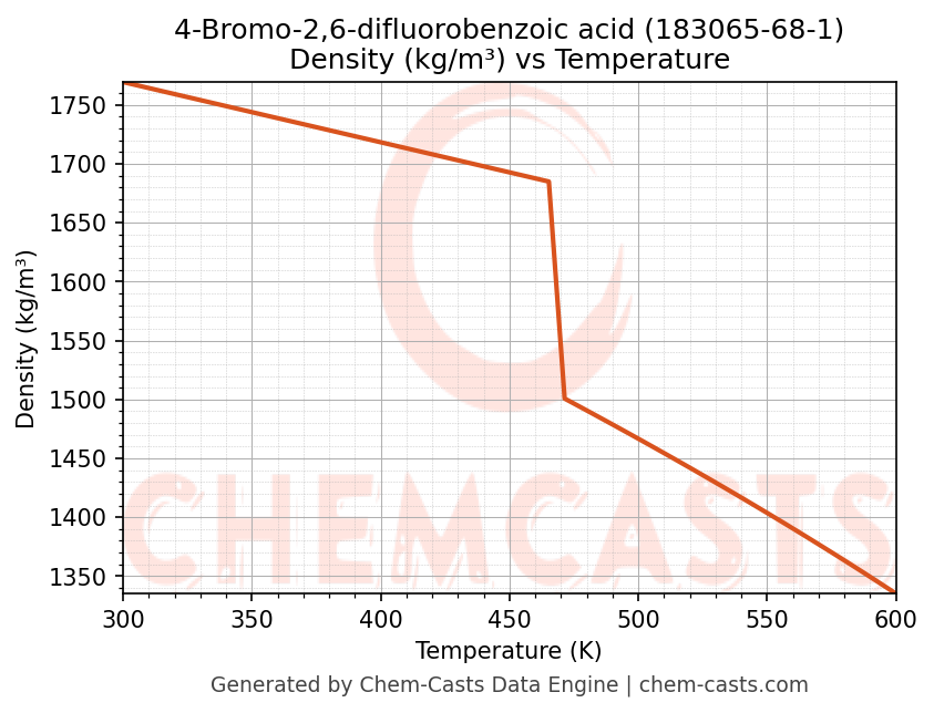 This page presents the temperature-dependent thermodynamic and transport properties of 4-Bromo-2,6-difluorobenzoic acid (CAS 183065-68-1) calculated at a constant pressure of 1 atm (101325 Pa) over the temperature range 250-500 K.