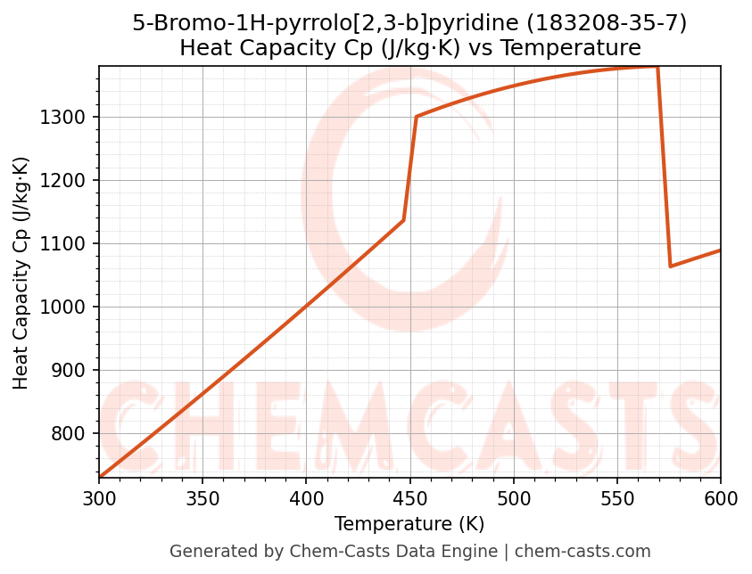 ![Heat Capacity (Cp) vs Temperature chart for 5-Bromo-1H-pyrrolo[2,3-b]pyridine (CAS 183208-35-7)](https://chemcasts-prod.s3.ap-south-1.amazonaws.com/chem_plots_pconst/183208-35-7-cp.png)