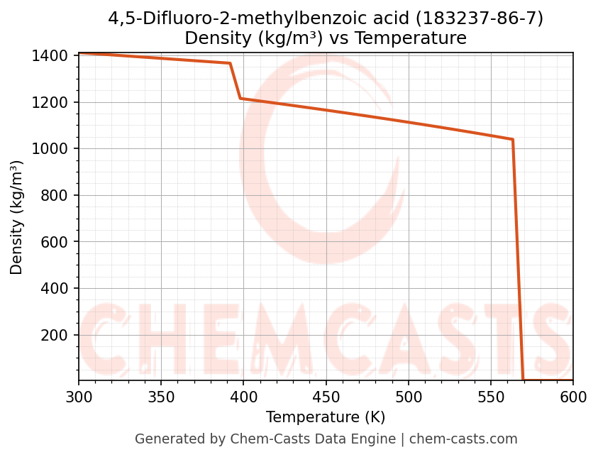 This page presents the temperature-dependent thermodynamic and transport properties of 4,5-Difluoro-2-methylbenzoic acid (CAS 183237-86-7) calculated at a constant pressure of 1 atm (101325 Pa) over the temperature range 250-500 K.