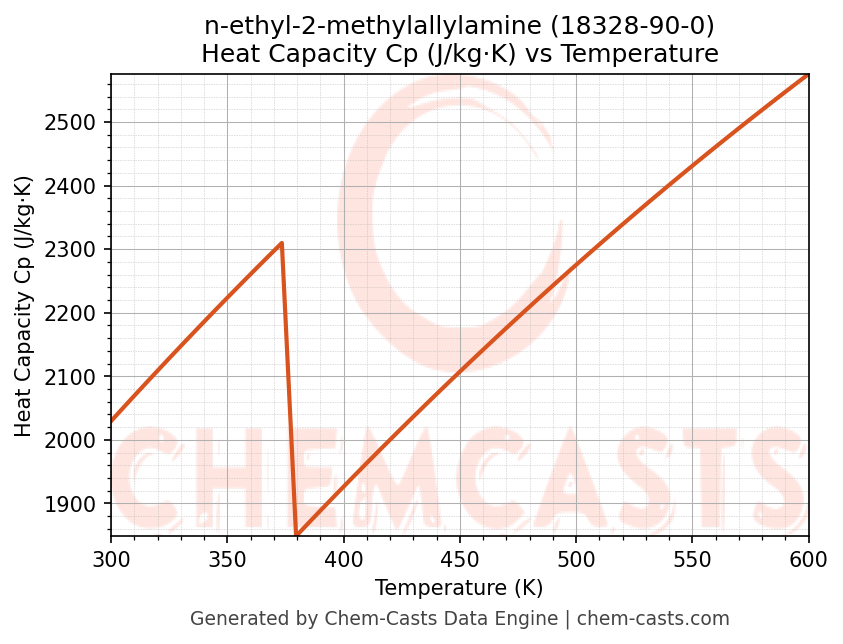 - Specific heat capacity (Cp) indicates the amount of energy required to raise the temperature of n-ethyl-2-methylallylamine and is critical for energy balance and heat-exchanger design.