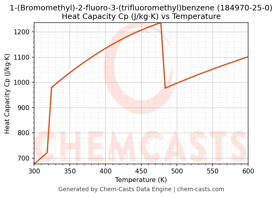 - Specific heat capacity (Cp) indicates the amount of energy required to raise the temperature of 1-(Bromomethyl)-2-fluoro-3-(trifluoromethyl)benzene and is critical for energy balance and heat-exchanger design.