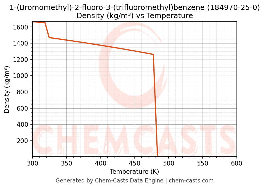 This page presents the temperature-dependent thermodynamic and transport properties of 1-(Bromomethyl)-2-fluoro-3-(trifluoromethyl)benzene (CAS 184970-25-0) calculated at a constant pressure of 1 atm (101325 Pa) over the temperature range 250-500 K.