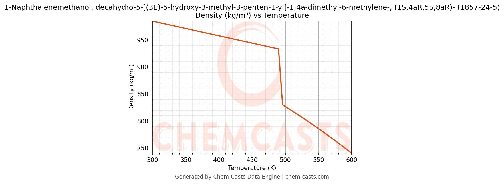 ![Density vs Temperature chart for 1-Naphthalenemethanol, decahydro-5-[(3E)-5-hydroxy-3-methyl-3-penten-1-yl]-1,4a-dimethyl-6-methylene-, (1S,4aR,5S,8aR)- (CAS 1857-24-5)](https://chemcasts-prod.s3.ap-south-1.amazonaws.com/chem_plots_pconst/1857-24-5-density.png)