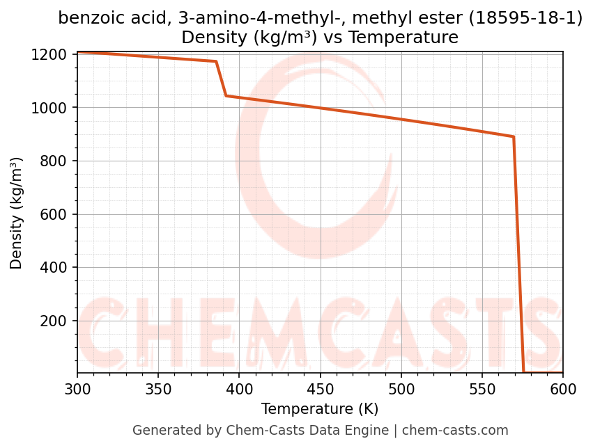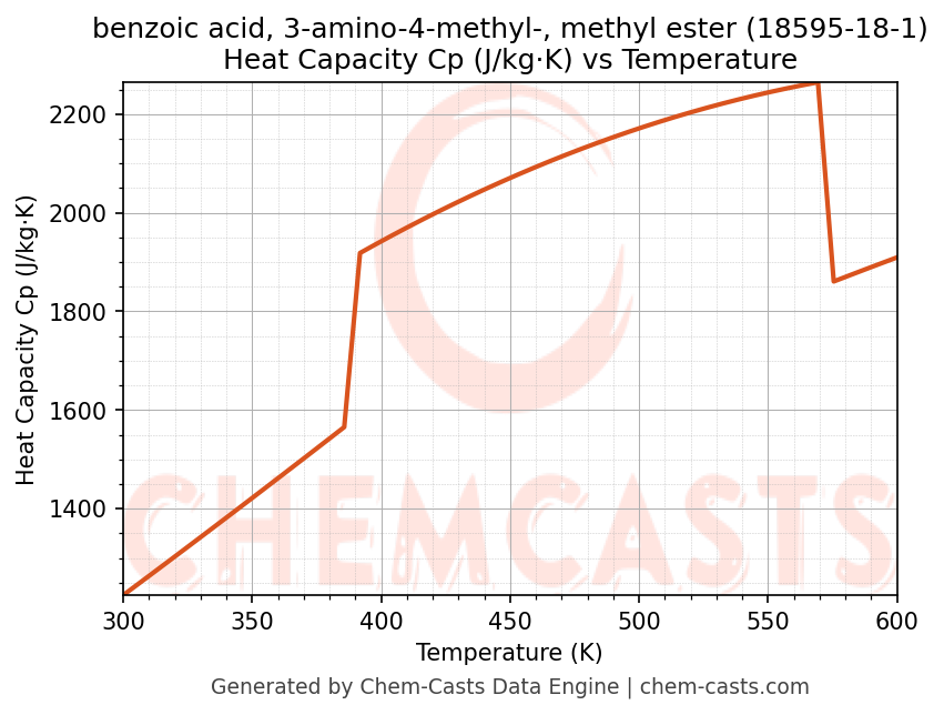 - Specific heat capacity (Cp) indicates the amount of energy required to raise the temperature of benzoic acid, 3-amino-4-methyl-, methyl ester and is critical for energy balance and heat-exchanger design.