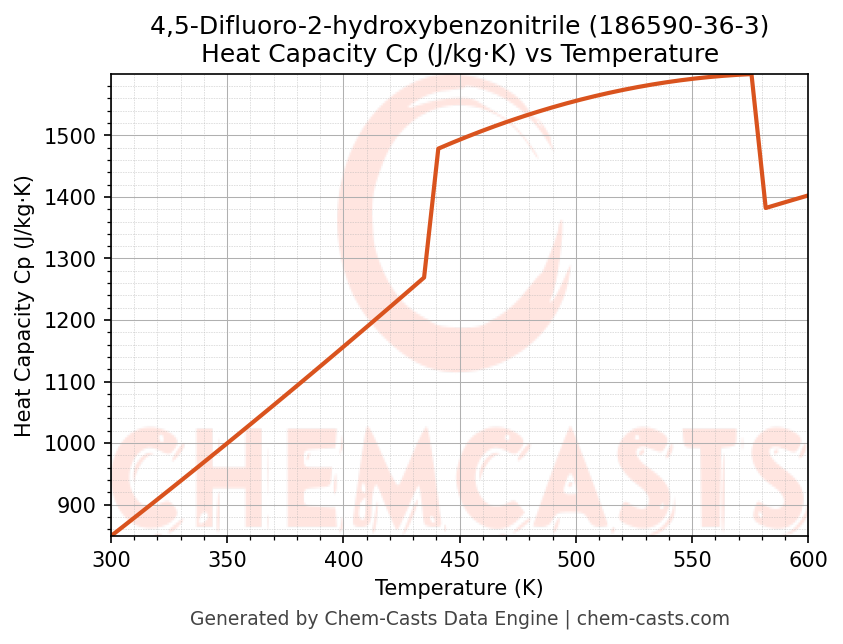 - Specific heat capacity (Cp) indicates the amount of energy required to raise the temperature of 4,5-Difluoro-2-hydroxybenzonitrile and is critical for energy balance and heat-exchanger design.