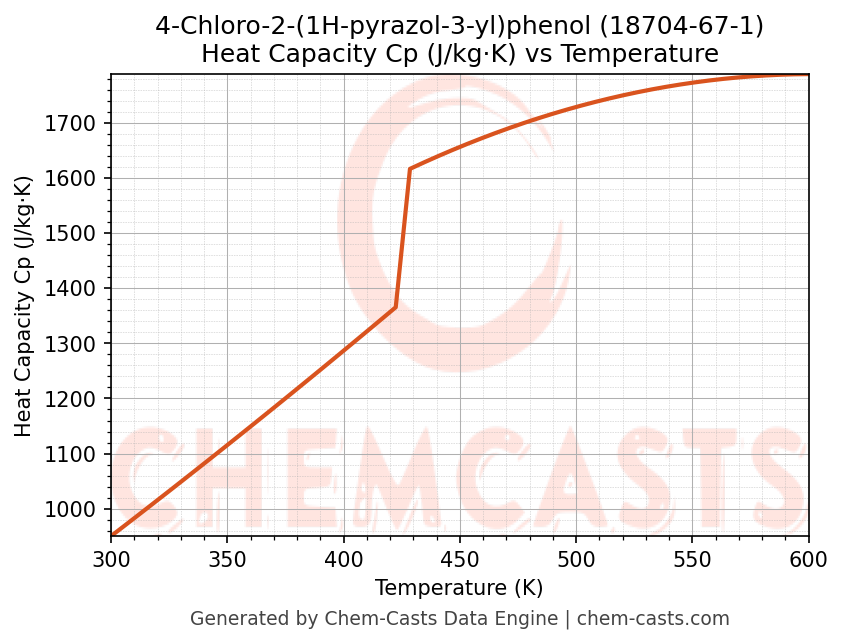 - Specific heat capacity (Cp) indicates the amount of energy required to raise the temperature of 4-Chloro-2-(1H-pyrazol-3-yl)phenol and is critical for energy balance and heat-exchanger design.