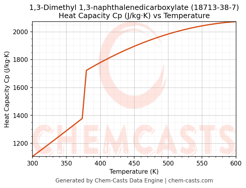 - Specific heat capacity (Cp) indicates the amount of energy required to raise the temperature of 1,3-Dimethyl 1,3-naphthalenedicarboxylate and is critical for energy balance and heat-exchanger design.