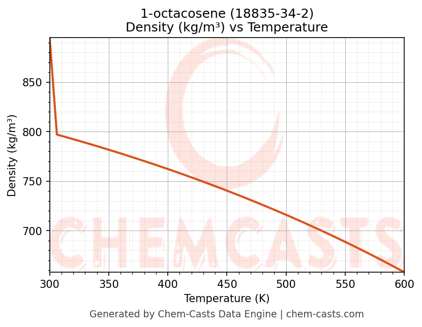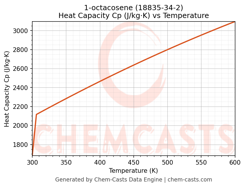 - Specific heat capacity (Cp) indicates the amount of energy required to raise the temperature of 1-octacosene and is critical for energy balance and heat-exchanger design.